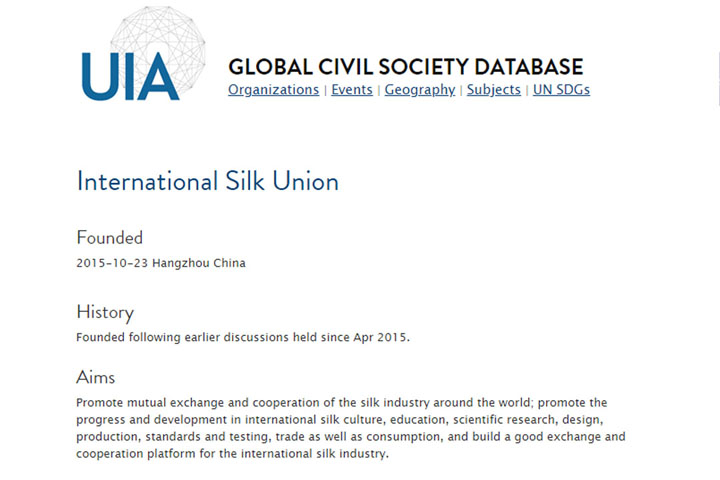 國(guó)際絲綢聯(lián)盟(ISU)是由全球各絲綢生產(chǎn)、消費(fèi)國(guó)的企業(yè)與相關(guān)組織自愿參加的國(guó)際化、專業(yè)化的非營(yíng)利性社會(huì)組織,由凱喜雅集團(tuán)于2015年發(fā)起設(shè)立。國(guó)際絲綢聯(lián)盟的設(shè)立旨在促進(jìn)各國(guó)絲綢行業(yè)的相互交流與合作,推動(dòng)國(guó)際絲綢文化、教育、科研、設(shè)計(jì)、生產(chǎn)、標(biāo)準(zhǔn)與檢測(cè)、貿(mào)易、消費(fèi)等方面的進(jìn)步與發(fā)展,為國(guó)際絲綢行業(yè)搭建一個(gè)良好的交流合作平臺(tái)。